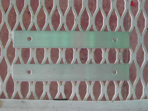 Marcas de punzón en el agujero, y luego perfore un orificio de 11/64" en cada puesto con las dos barras apiladas entre sí para conseguir los agujeros en el mismo lugar. O perforar una barra de transferencia de las marcas a la segunda barra y perforarlo.