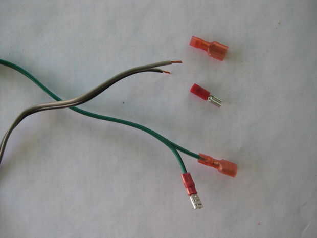 He utilizado un alambre de un kit de altavoces de audio estándar - 22 calibre cable zip con una franja negra en un alambre para identificación de polaridad. Hice la raya negra que el cable negativo y le dio el. 187" de terminal.
