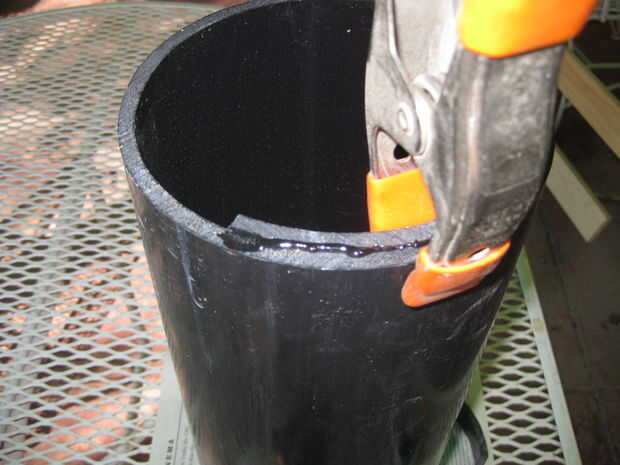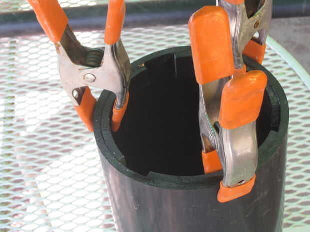 Deje que la Asamblea se seque durante una hora (más si hace frío afuera). Retire las abrazaderas, voltee el tubo y los otros tres arcos del cemento en el otro extremo de la tubería.