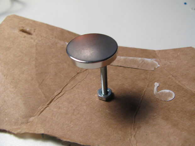 Después de que las ruedas se hacen dab caliente pegamento en un lado de cada uno y empuje contra el cuerno del servo, uno por uno a cada lado. Tratar de que ellos como centrado en como usted puede ver el espacio entre el borde de la bocina y el borde del imán en los cuatro quadrents. Si no entiendes bien, intentarlo por refundición con la pistola de calor, solo ver que no arruinara los bordes exteriores que trabajaste tan duro para perfeccionar.