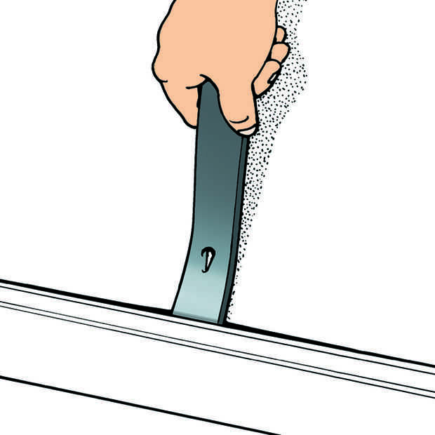 Para utilizar un gabinete de esta profundidad, tienes que quitar el rodapié Moldura en la parte trasera del armario. Utilice una palanca plana para quitar la moldura (Fig. 1). Coloque la moldura para reinstalación. A continuación, uso la barra de palanca para quitar el interior de la puerta ajuste de las jambas laterales de la abertura de la puerta (el adorno quedo en su lugar a lo largo de la jamba de la cabeza) guardar la moldura para substituir más adelante también.