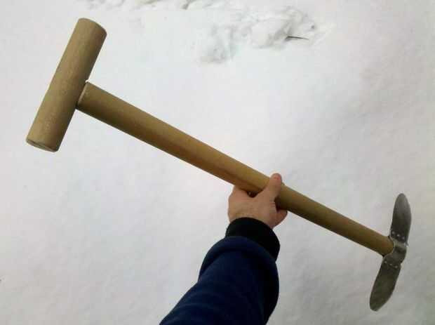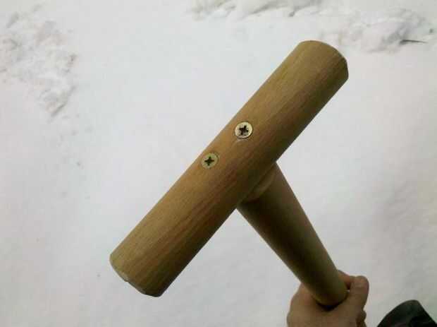 Después de esto, la pieza pequeña debe ser perpendicular montado en el mango de la pala de madera.