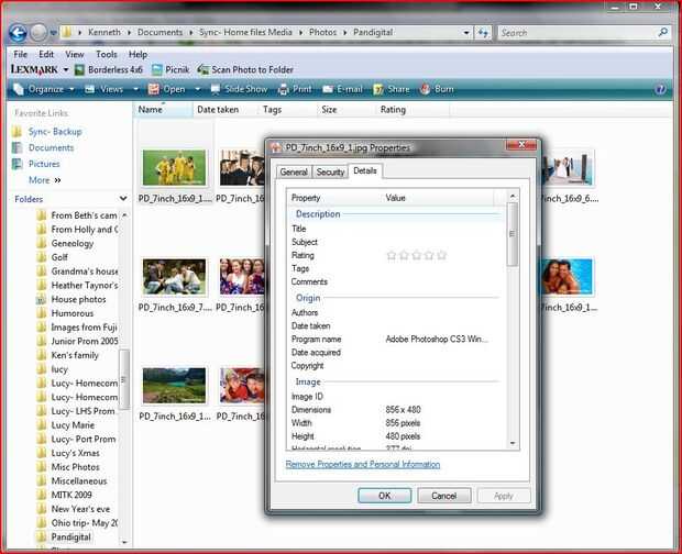 Mira las muestra las imágenes almacenadas en tu marco de fotos LCD. Para mi marco, todas las imágenes de la muestra fueron 856 x 480 píxeles. Para determinar esto, haga clic derecho sobre el archivo de imagen y seleccione Propiedades. Usted debe ver una serie de pestañas, una de las cuales se debe llamar "Información." Haga clic en la pestaña de detalles; bajo imagen verá una anchura y altura. Escribir esto o mantenga la ventana abierta, porque vamos a utilizar para configurar el PowerPoint.