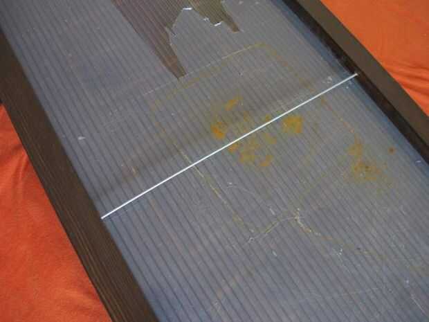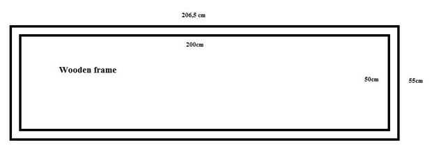 El marco de madera es 206, 5cm por 55cm y tiene un perfil "L" para montar el sándwich de policarbonato. También puse una varilla roscada M4 en el centro de la estructura para que sea resistente (madera es elástica y el sándwich puede caer fuera de la estructura de madera).