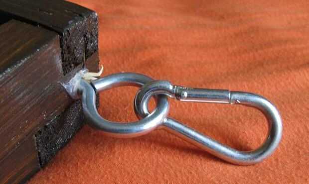 También usé unos ganchos y algunos mosquetones pequeños para tener algunos puntos de suspensión (la pantalla tiene que ser colgado en un punto más alto de visibilidad).