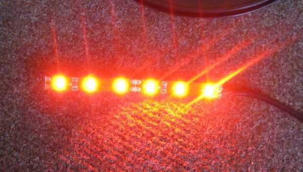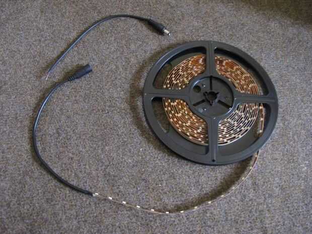 Los LED vienen en carretes y son alimentados por 12V. Puedo cortar la longitud deseada de la raya del LED, pero tenía que seguir unas reglas: