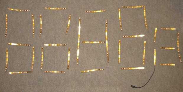 Así que aquí están las opciones: el display de 7 segmentos grandes utiliza 3 LED tiras de LED de 5cm (3 LEDs por banda), el pequeño utiliza 2 LED tiras x 5 cm.