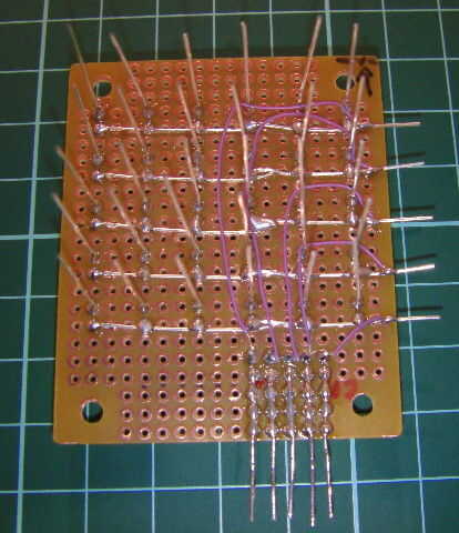 Técnicamente: las columnas están controladas por pernos digitales de 2 a 7 (PORTD), mientras que las filas utilizan pernos de 8 a 12. Esta forma de abordar la matriz significa que solo un LED se pueden encender en cualquier momento, pero nos permite controlar 30 LEDs individualmente sin necesidad de costosos multiplexación y direccionamiento de hardware.