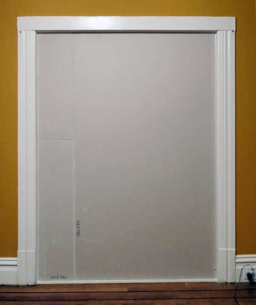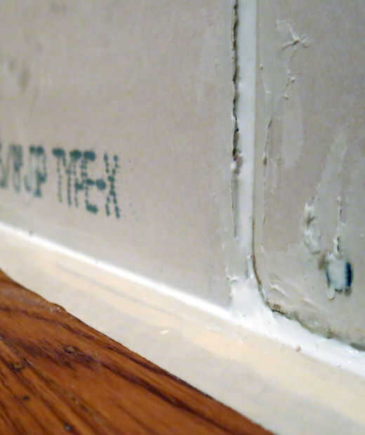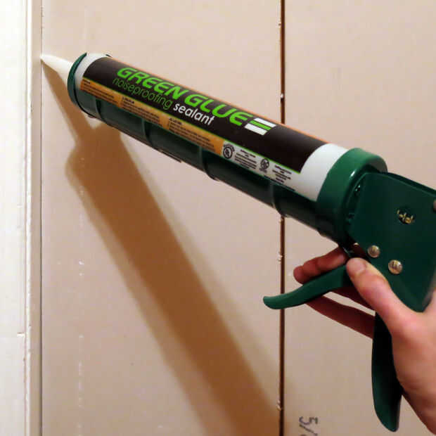 Coloque la primera capa de yeso al bastidor con tornillos cada 16" o algo así. Al terminar llene todas las costuras con sellador adhesivo verde (puede no ser necesario para sellar ambas capas de yeso, pero pensé podría así).