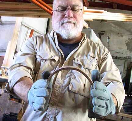 Después de tirar una costilla de la steambox, tienes una cantidad limitada de tiempo para doblar. Una vez que se enfría, la costilla comienza a endurecer para arriba. Por lo que necesitará trabajar rápido. Una vez que se fija la costilla doblada a la borda, aún pueden hacer ajustes a la forma, pero el doblez principal debe hacerse mientras la costilla está justo fuera de la steambox.