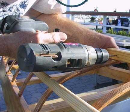 Taladrar un hueco de la sobrequilla de amarre donde la sobrequilla se cruza con una costilla de 3/16 pulgada.