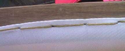 Ahora coser otro pase alrededor de la brazola, para que el hilo cubrirá los huecos entre los orificios que no estaban cubiertos en la primera pasada.