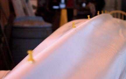 Usar unas pinzas de presión para sujetar la tela a la sobrequilla. Estos pernos mantendrán la piel centrada cuando se estiran alrededor del casco.