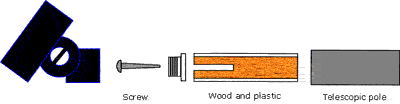 El principal componente de la construcción es un poste telescópico, utilizado por los pintores. Les permite usar un cepillo de rodillo para pintar techos altos y paredes sin subir escaleras. Sólo
