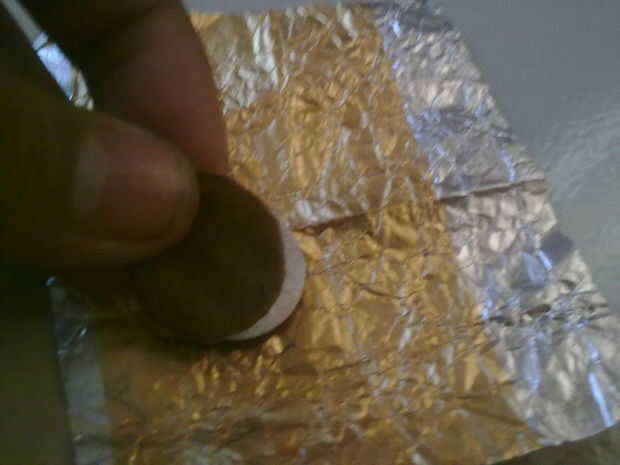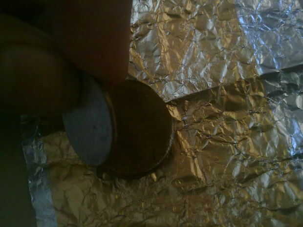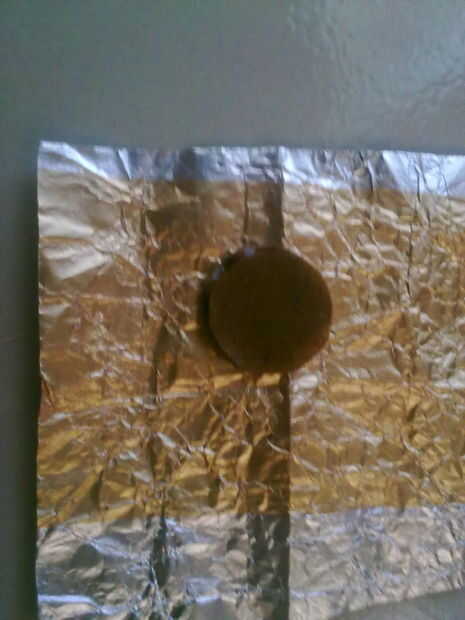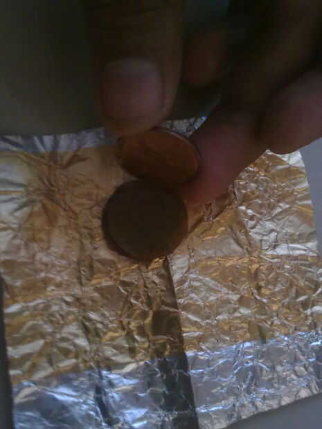 cada moneda y el cartón producen 0,5 voltios y apilar seis de ellos te dará 3 voltios que es suficiente para iluminar un led.