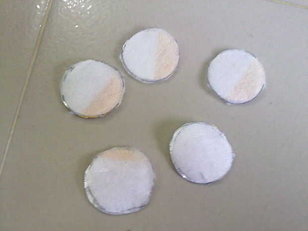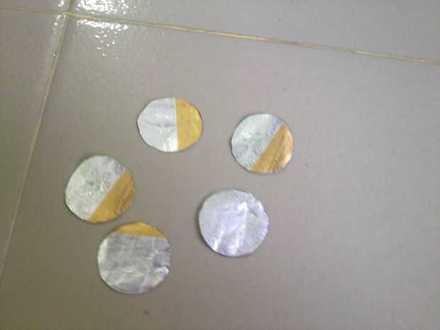 ahora tomar el papel de aluminio, poner en el suelo y poner el tejido o cartón y luego las monedas.