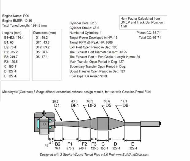 Una vez que tenga toda su información se reunieron, ya estás listo para el diseño de la tubería. Hay dos maneras de hacer esto - a mano usando las ecuaciones y la información en el libro de A. Grahm Bell, o mediante un programa de computadora. La primera vez que intentó construir una tubería utiliza un programa online gratuito. La pipa salió de manera demasiado pequeño. Funcionó, pero a muy alta RPM y restringió el flujo demasiado. Para este intento, usé un programa llamado a dos Asistente de carrera por construir y haga clic en.