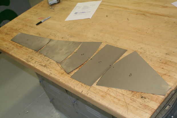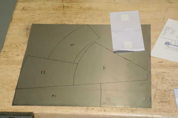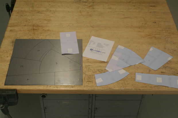 Una vez que tengas todos los conos y cilindros patrones, su simplemente una cuestión de trazado en el metal. No me gusta hacer un montón de cortes, por lo que trató de consolidar lo más posible, alineando cortes largos con otros. Puedes ver mi diseño finalizado en foto 2 y 3.
