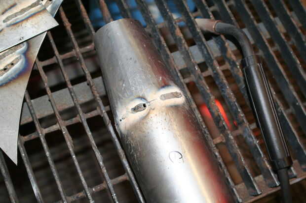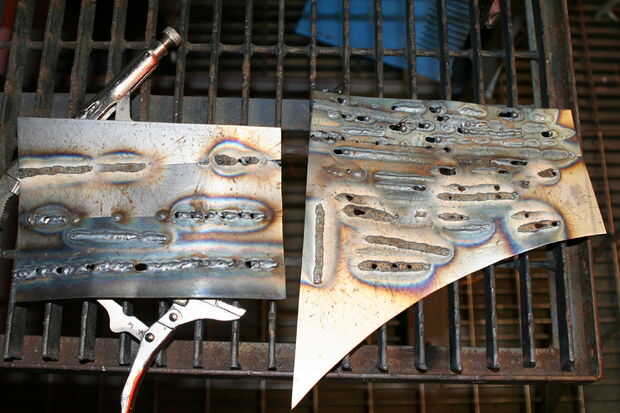 2. el "zappy-zap" if soldadura usted todavía soplan los agujeros en el metal, también puede soldar un punto, saltar adelante aproximadamente 1/4" y soldar hacia atrás en el lugar ya soldado. Esta manera, la parte más caliente de la soldadura es encima del metal más grueso (porque terminó encima de la soldadura anterior) lo que es menos probable que los agujeros del soplo en él. Soldadura hacia atrás, salto adelante 1/4", soldadura hacia atrás, salto adelante, repetir...