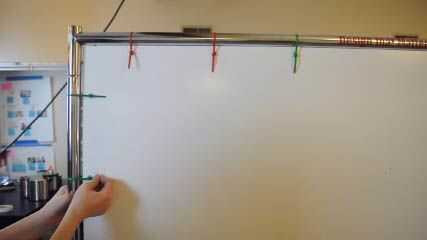 Soporte z-rack hacia arriba con la pizarra colgada en el lugar.
