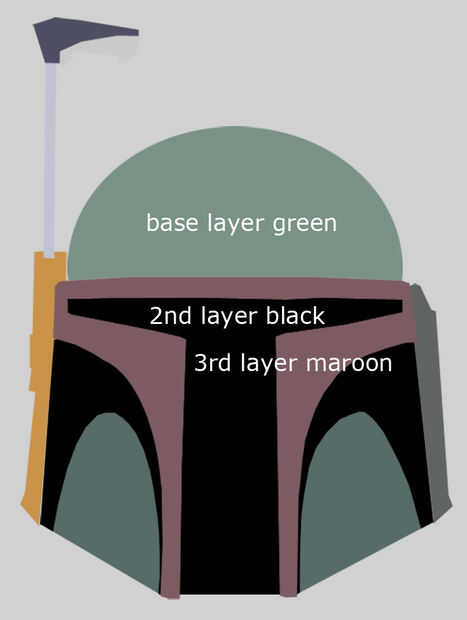 Como este sobrino era un poco mayor, que quería pasar más tiempo en esto y trate de agregar las cicatrices de batalla. www.thedentedhelmet.com es un sitio dedicado a los pilares del edificio de Bobba Fett y fue indispensable en heping mí encontrar plantillas de pintura, tiros cercanos, etc..