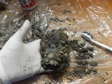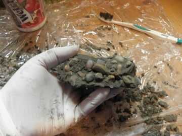 Antes de que el cemento está completamente duro, use un cepillo de dientes y las manos enguantadas para limpiar el cemento suelto de la grava del acuario. Es importante ser suave, o todo puede desmoronarse en este punto. Sin embargo, será mucho más difícil de limpiar para arriba y exponer la grava si espera hasta que el cemento se endurezca completamente.