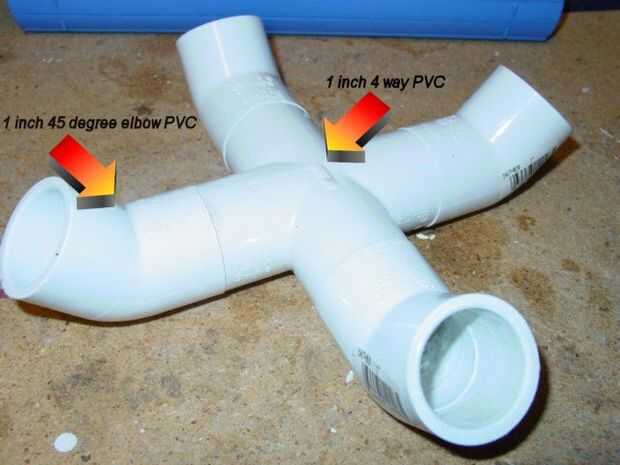 OK vamos a empezar. Voy a citar libremente el sitio web de central de información para la sección de la base inferior de las instrucciones del cojín. Tomar una sección de 8 pies de tubería de 1" PVC y corte cuatro secciones de 2 pulgadas de tubo con una sierra o un cortador de PVC. Tomar el tubo restante y cortar 23 pulgadas, cuatro secciones de tubería. Tomar el acoplador de la pipa de 4 vías y empalme de PVC compuesto de limpieza para conseguir las juntas listas para unirse a. Lo mismo para las secciones de 2 pulgadas que sólo se cortan. Cubrir las articulaciones según las instrucciones de su compuesto de cemento de PVC. Inserte las secciones de 2 pulgadas en cada uno de los cuatro agujeros de la forma 4. Dejar que como indican las instrucciones en la etiqueta de cemento. Tomar los codos cuatro 45 grado y limpiar uno de los extremos y prepararlos para pegar al resto de las secciones de 2 pulgadas que son de la forma 4. Prueba de ajuste a cada uno de los codos de 45 grados y asegúrese de que puede todos ser empujados completamente en y asegúrese de que usted puede conseguirlos todos alineados hacia abajo, antes de aplicar cualquier pegamento.