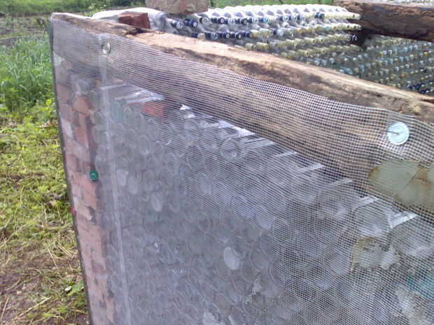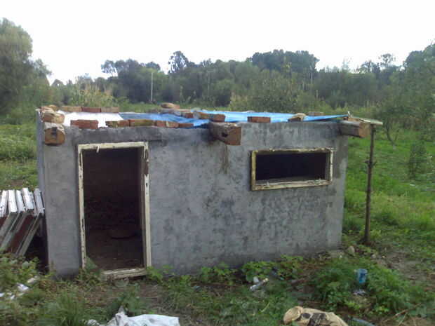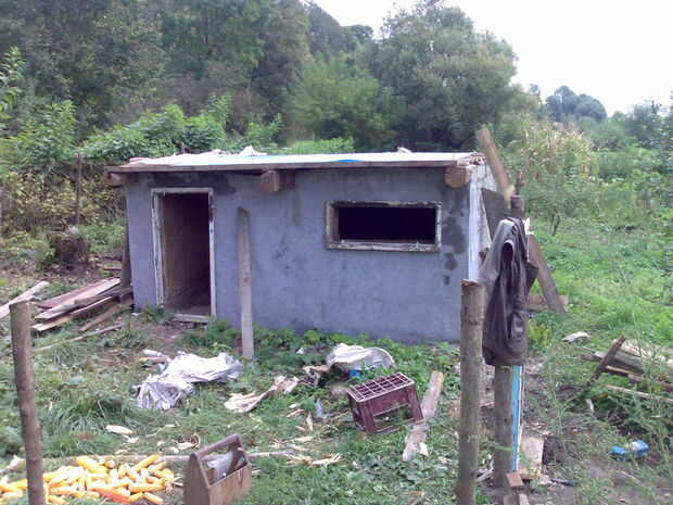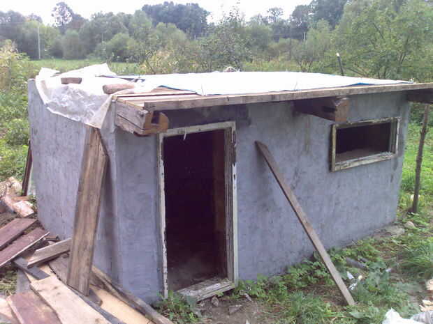 Ah y para el techo utilicé viejas vigas de madera y tableros, sin especiales fijación clavos comunes