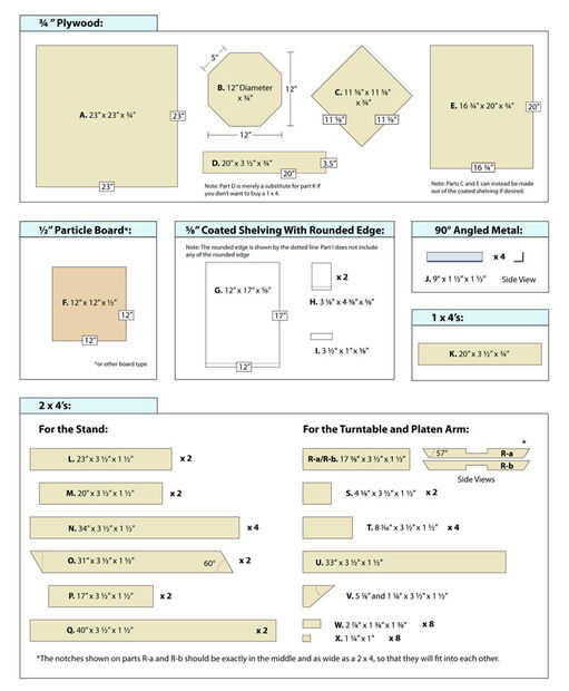http://printingplans.com ). El tablero de partícula puede ser otro tipo de madera como es 1/2 espesor. Lo más importante en relación con el espesor de la madera es que la suma de la anchura de piezas B, F y el plato giratorio de 1.Lazy susan es igual a la suma del espesor de las piezas me y U. Esto le ayudará a alinear todo para que sus pantallas de flotador a la altura perfecta sobre sus camisas para la impresión fuera de contacto. Usted debe ser capaz de cortar todas las piezas de 2 x 4 de seis longitudes de 8 pies, por lo que Id recomendamos comprar siete para estar seguro. Deben estar buenas, piezas rectas, pero es especialmente importante encontrar una pieza perfectamente recta por T y U.
