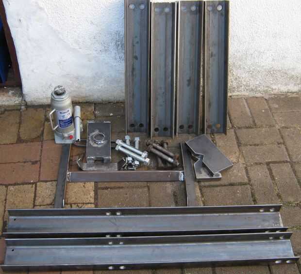cómo hacer una prensa hidráulica casera con un gato del coche, acero del canal u (viga u) y varilla roscada. No está terminado. La toma debe ser perno o conectado a la base y la base a la tabla.