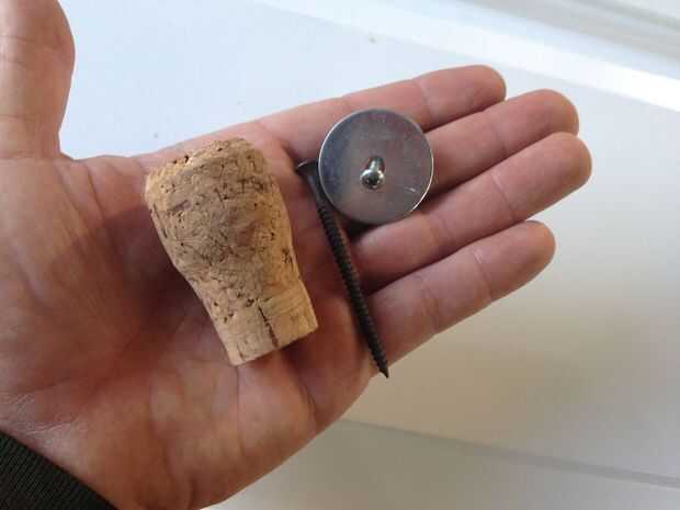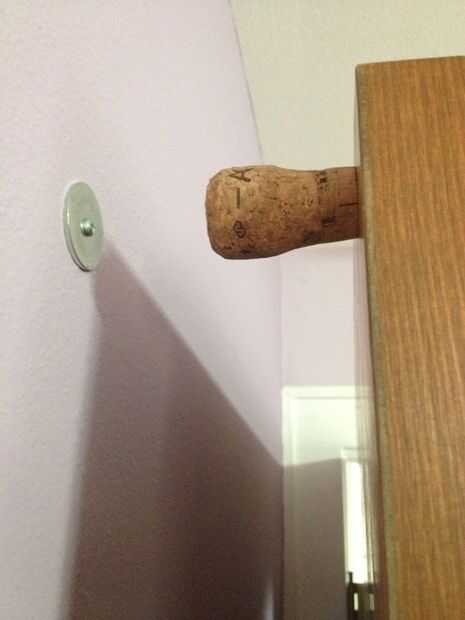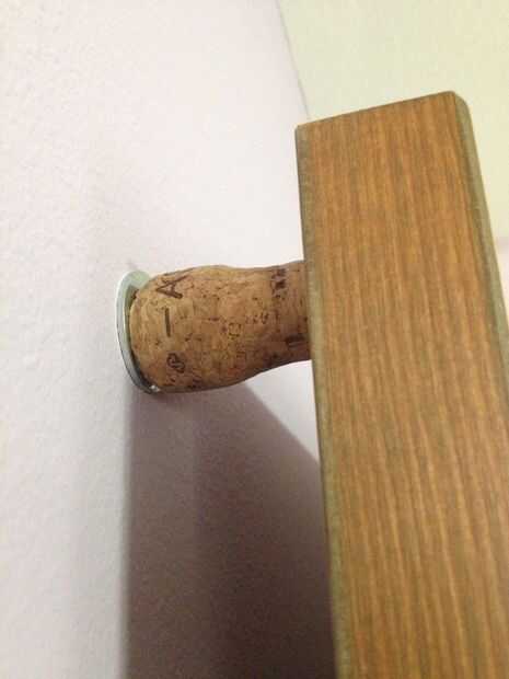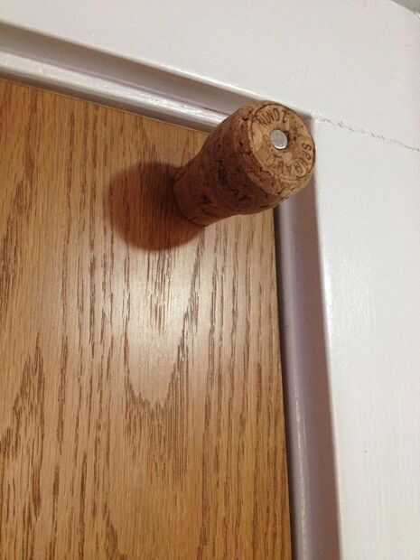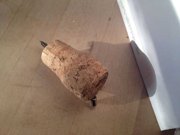 Corrí el tornillo drywall largo a través del corcho hasta que fue avellanada la cabeza del tornillo sobre la profundidad del imán. Manejé el tornillo drywall y corcho en la parte superior de la puerta. Una vez, pega la derecha imán encima de la cabeza del tornillo.