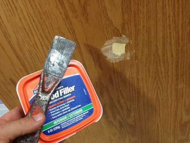 Cualquier lugar que tiene un punto bajo, consiguió un ding, o sólo en algún lugar que consiguió en mal estado puede conseguir masilla un poco. Es fácil trabajar con masilla de madera. Sólo poner un poco del relleno donde necesitas ir y alisar con una espátula o pieza de plástico plana. Una vez se ha secado, puede ser enarenada y pintado, al igual que madera.