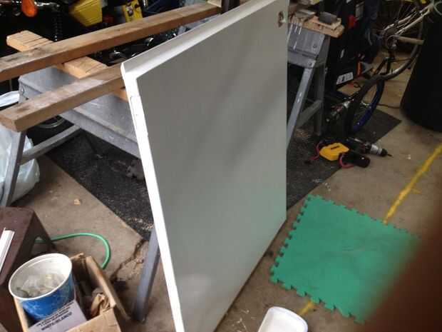 Entonces, la masilla, la arena y la pintura de la puerta.