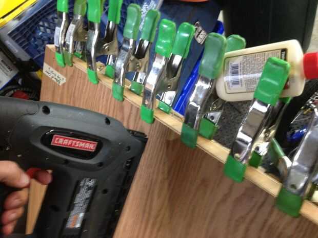 El siguiente es sacar el pegamento de madera, abrazaderas y broches.