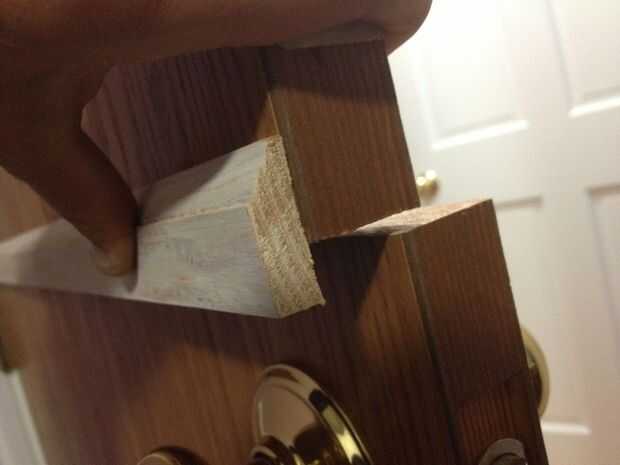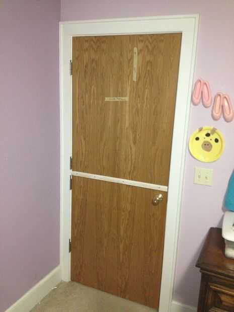 Tuve algunos ajuste que fue sobra de mi casa remodelando, por lo que corresponde el trabajo de madera existente en la casa. Corté un pedazo de unas pocas pulgadas más cortos que el ancho de la puerta, porque necesito un margen de un pasador que une las mitades superior e inferior de la puerta.