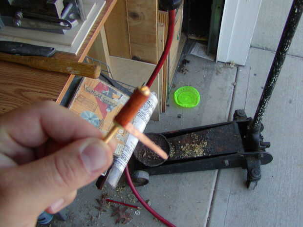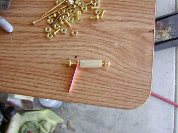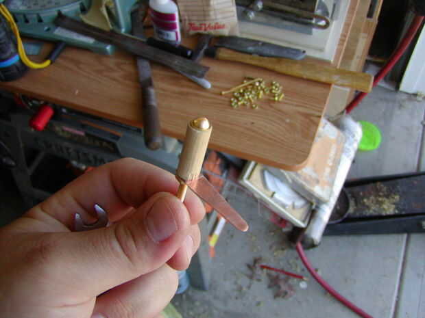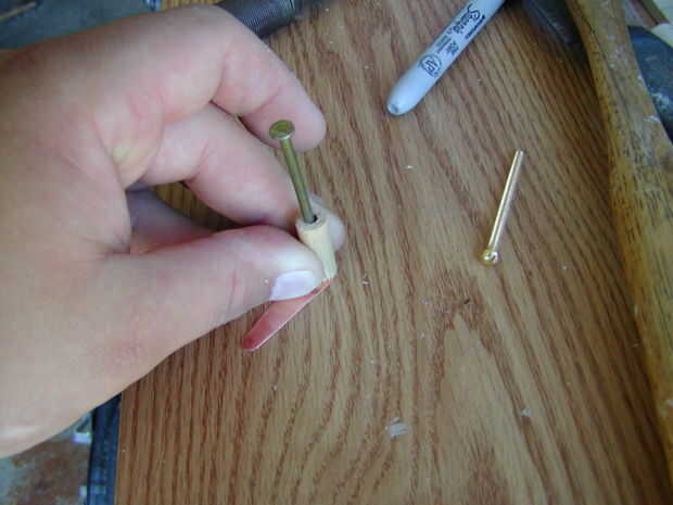 6) cortar un trozo de espiga 1/2" de largo y perfore un orificio de 5/32" hacia abajo en el centro.