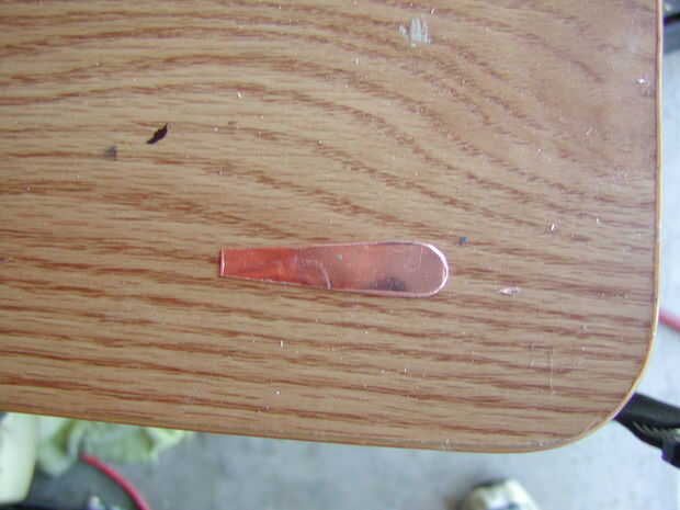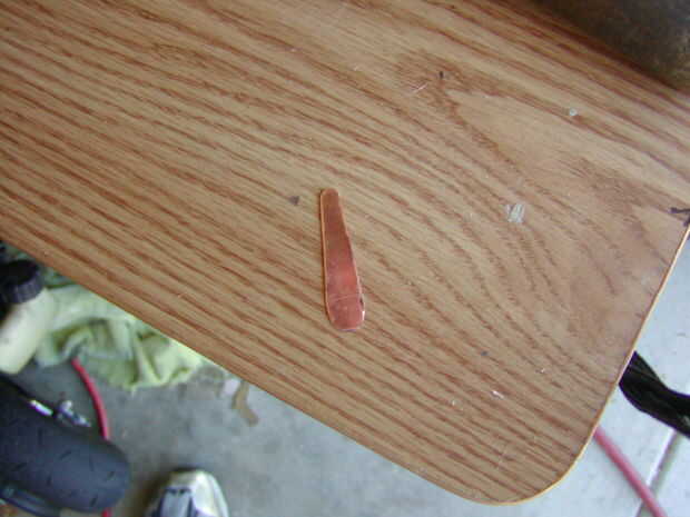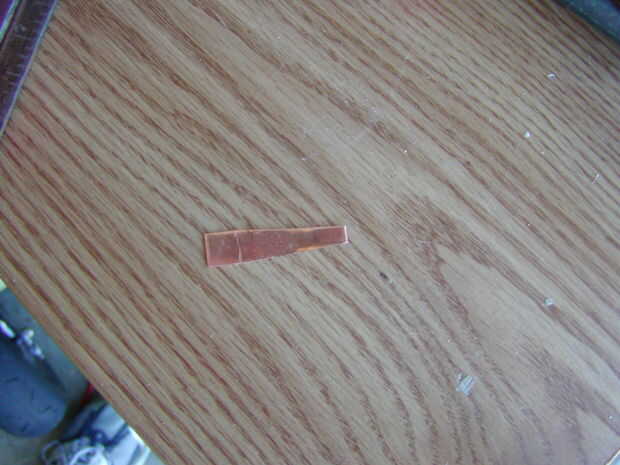 2) utilizando tijeras cortar la tira a lo largo de la línea y volver a aplanar la tira con un martillo sobre una superficie dura.