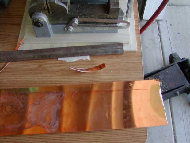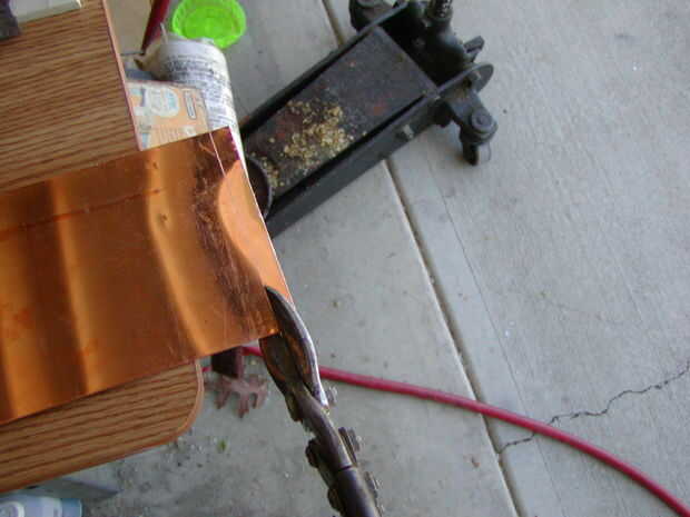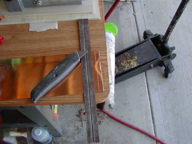 1) usando una regla y marcador de utilidad cuchillo una línea de 3/8" de pulgada de un extremo de la hoja de cobre.
