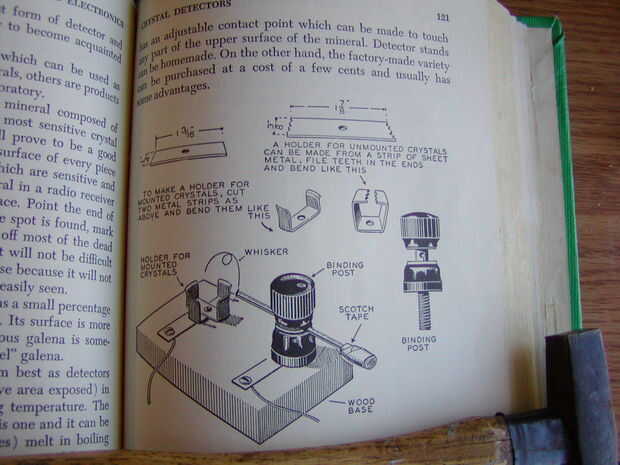 Realmente tengo los planes para este detector del libro, "Lo chicos primer libro de radio y la electrónica" por Alfred P. Morgan. Este es un gran libro viejo con un montón de información sobre este tipo de cosas con numerosos planes de radio cristal, radio tubo y amplificadores del tubo, recomiendo altamente este y cualquier otro libro de este autor si lo encuentras.