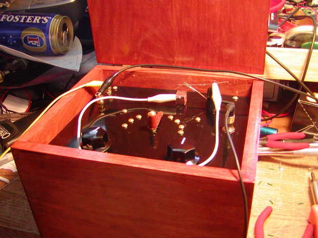Si una radio de cristal es la esencia destilada de una radio, este transmisor es la correspondiente esencia destilada de los transmisores.El transmisor va juntos en unos 10 minutos y es lo suficientemente pequeño como para caber en la palma de su man