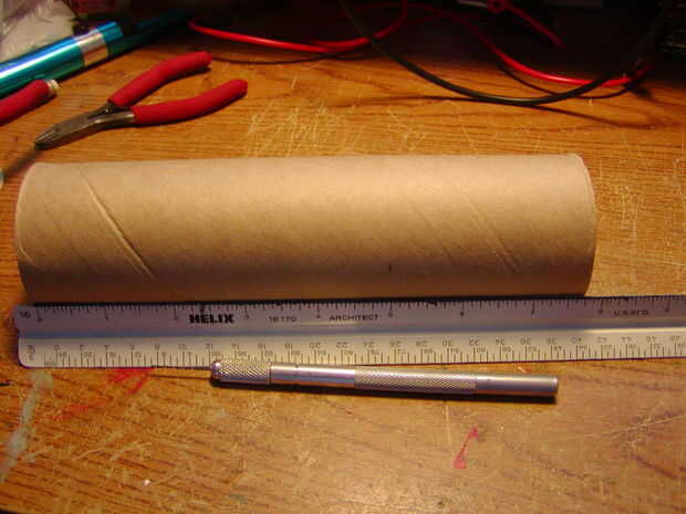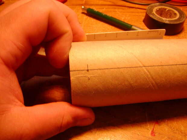 -Con una regla marcar el tubo de 5 pulgadas de lado y envolver cinta alrededor del tubo en esa marca.