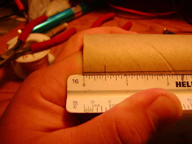3) utilizando la regla, haga una marca en la línea 1/2 pulgada desde un extremo del tubo, esto es fueron el comienzo bien de bobina.