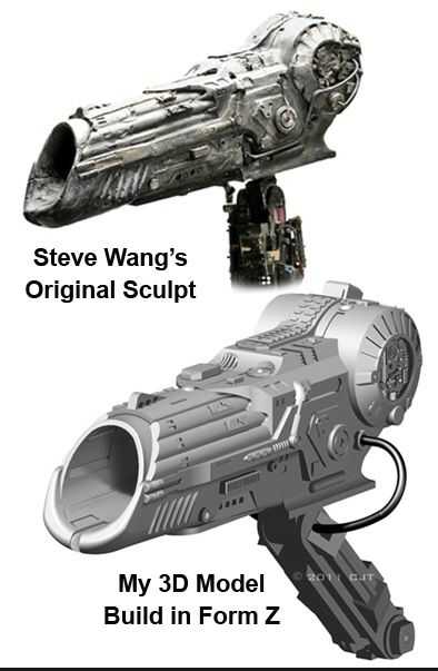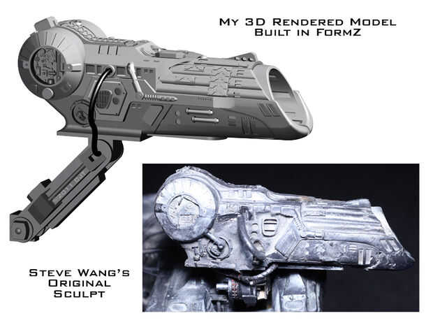 Mientras que el cañón anterior había sido esculpido a mano, el nuevo cañón y el cañón brazo modeladas en la computadora e impresos usando una impresora 3D. Amigo de Carl Scott Andrews funciona LightBeam 3D y fue capaz de ayudarle a preparar el modelo para la impresión y luego imprimirlo en una propiedad pasta plástico UV curado usando su impresora 3D de EnvisonTec Perfactory. Scott también algunos de los pequeños "greeblies" impreso para esculpir la mochila.