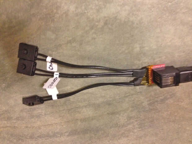 Entradas de control sería tres Interruptores táctiles punta de dedo pequeño. Los interruptores son de encendido/apagado así que si Jamie empuja uno de ellos un sonido se repita una y otra vez hasta que se apague. Además el cañón seguirá moverse a través de ha programado secuencia hasta que se apague. Los interruptores de punta de dedo se conectaron a la mochila mediante un cable ethernet que funcionaría a lo largo del brazo de Jamie y los interruptores se sentarían dentro de los dedos del guante.
