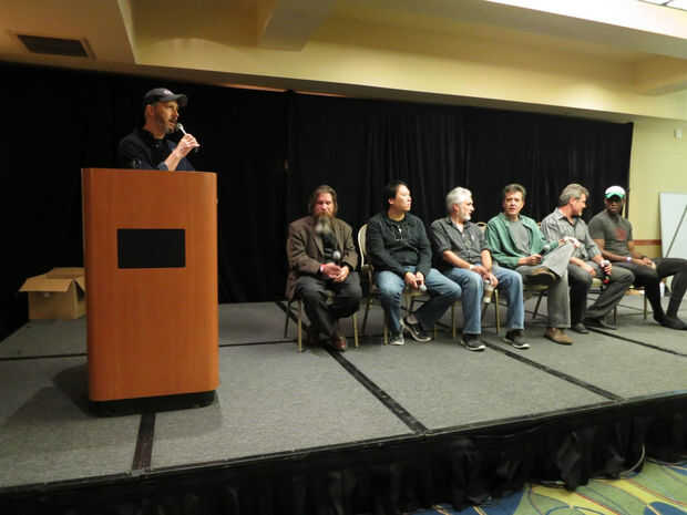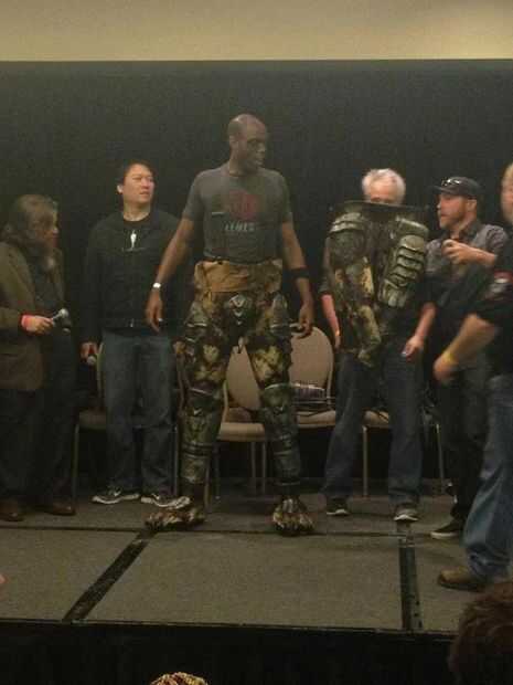 Matt Winston fue nuestro maestro de ceremonias, como él y el resto de los chicos contó sus experiencias con Kevin Peter Hall. Eran grandes. Son verdaderamente la sal de la tierra. Jamie habló de su tío y su deseo de ayudar a aumentar conciencia del depredador. Con ese deseo, él estaba en buena compañía. Por último, Gene y Damon tomaron el micrófono y describen la génesis de la Jamie depredador homenaje juego proyecto, seguido por mi participación, con shout outs a Julie, arcilla y Jerome que no podía estar ahí... y por supuesto, Andrew - que comenzó este lugar loco (del cazador la guarida) donde los miembros se reúnen para hacer impresiones duraderas como esta. Luego, fue tiempo para Jamie vestido. Pero, no iba a ser sólo nosotros, Matt tuvo la ayuda de chicos de FX out, reviviendo sus experiencias ayudando a KPH vistió hace 26 años! Fue impresionante.