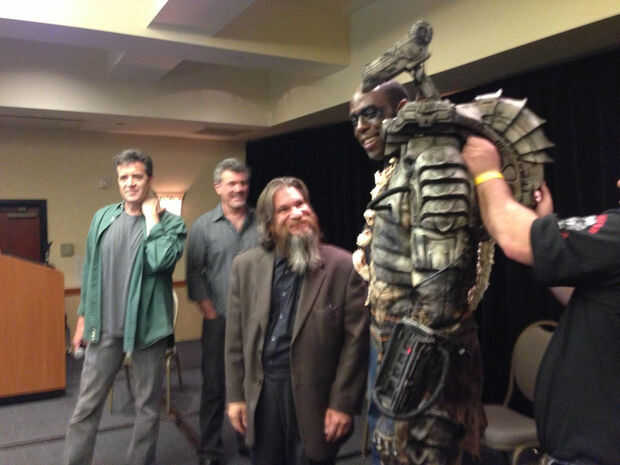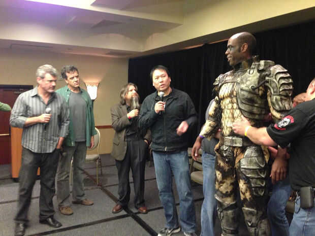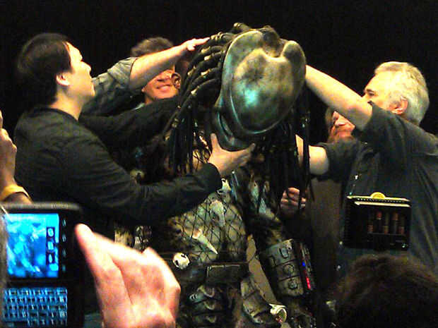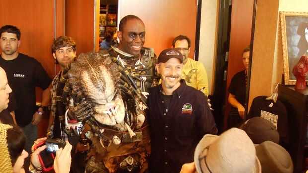 "Fueron todos arriba de 8:00, funcionó en el Marriot, omiten el desayuno, y comenzó la creación de la sala. El hombre sano tenía el depredador música Jamie dio él, el video y equipo de cámara estaban en su lugar, y el traje estaba listo para ir. Antes de mucho Alec Gillis, Tom Woodruff, Shannon Shea, Matt Rose y Steve Wang habían entrado en la sala y fueron amantes de todas las partes de pred que se reunieron en el escenario. Recuerdo destacando a Alec que tenía una apreciación nueva para las largas horas él y sus compatriotas pusieron proyectos sobre los años.