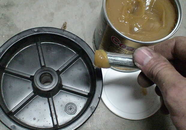 Grasa por el exterior del buje eje barato, empuje en la rueda y vuelva a colocar la rueda. Apriete el perno del eje hasta que el yugo fije en el buje del eje.