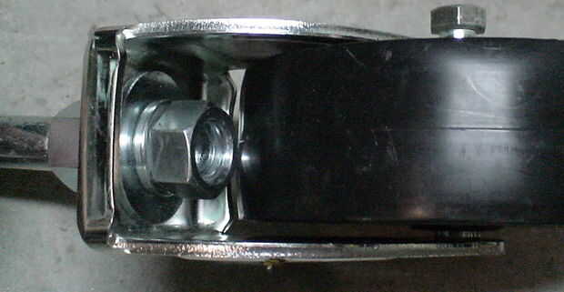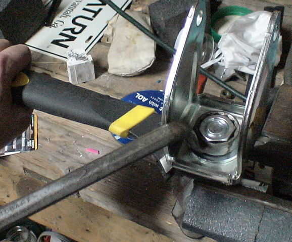 Cuando usted consigue todo lo que quieras (es decir, cuando la tuerca no la rueda no más), tomar la rueda atrás y sujete el vástago en la mordaza. Utilizando la llave en la tuerca del lado del vástago y el 1-1/8" llave o toma el lado de la rueda (ver segunda imagen de abajo) de la tuerca, apretar los daylights vivos fuera de ellos. (Bolsillo Ref dice usted puede ir a 257 libras-pie en un tornillo de grado 5. Buena suerte con eso).