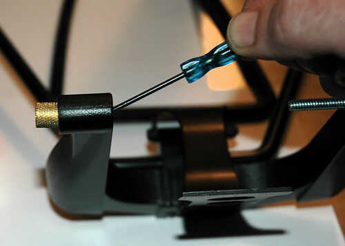 No es necesario quitar los anillos de goma con el tamaño de perno que he enumerado, pero si quiere - o si es necesario utilizar un perno más grande que he sugerido - usar un destornillador u otra herramienta para empujar el inserto de latón que sostiene. Necesita hacer bastante duro, y