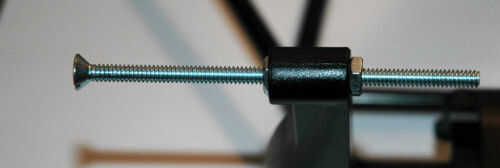 Observe que una tuerca real no es necesaria ya que allí ya es roscar la tuerca de primera. Si usted puede encontrar una arandela con el agujero de tamaño perfecto para caber el perno, funciona tan bien y tal vez incluso preferible, porque las variaciones de la rosca del perno podrían resultar en un desajuste de roscar entre dos pernos espaciados una pulgada de distancia. Una opción: perforar la segunda tuerca con una broca de sólo lo suficientemente gruesa como para eliminar la rosca.